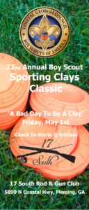 “Thank you for supporting this year’s Boy Scouts Sporting Clays Tournament. As a long-time Scouting supporter, I can tell you that the funds raised from this event will be going to a great cause. I look forward to seeing you on May 1st for this exciting event.” – Bobby Lewis, Tournament Chair, CGC Board Member